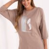 Casual women’s blouse with a metallic print on the front is the perfect everyday option that adds a subtle glow to the styling. Made of soft cotton with added elastane, it provides comfort and freedom of movement, and the standard length makes it easy to pair with favorite pants or skirt. The model with 3/4 sleeves and a classic round neckline combines comfort with a trendy accent, making it perfect for both everyday and slightly more casual, occasional stylings.