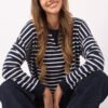 Casual women’s striped oversize blouse is a comfortable and fashionable proposition for everyday wear. Made of soft micro modal with elastane, it ensures comfort and freedom of movement. The standard length model with long sleeves and a classic round neckline is finished with ribbing, giving the blouse a modern character and subtly emphasizing the silhouette. Perfect for everyday, casual stylizations, both with trousers and a skirt.
