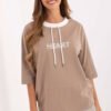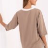 Casual women’s blouse with embroidery on the front and drawstrings at the neckline is a stylish choice for everyday occasions. Made of soft cotton with elastane, it ensures comfort and freedom of movement throughout the day. The model of standard length with 3/4 sleeves and a classic round neckline combines simplicity with a fashionable detail, making it perfect for everyday, casual stylings, both with trousers and skirts.