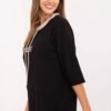 Casual women’s blouse with embroidery on the front and drawstrings at the neckline is a stylish proposition for everyday occasions. Made of soft cotton with elastane, it ensures comfort and freedom of movement throughout the day. The standard length model with 3/4 sleeves and a classic round neckline combines simplicity with a trendy detail, making it perfect for everyday, casual stylings, both with trousers and a skirt.
