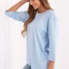 Casual women’s blouse with a smooth pattern is a universal proposition for everyday stylizations. Made of pleasant to the touch material, it ensures comfort throughout the day. The model of standard length with 3/4 sleeves and a classic round neckline combines simplicity with comfort, making it ideal for casual combinations with both trousers and skirts.