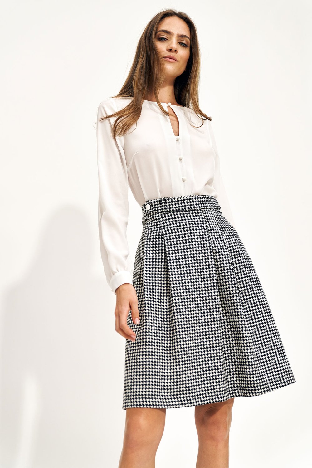 Stylish women’s blouse with a fitted cut that emphasizes the silhouette. Made of elastic material with spandex, which provides comfort and freedom of movement. The model has a polo neckline with a stand-up collar and long sleeves, giving it a sporty elegant character. The blouse is buttoned halfway, allowing you to adjust the depth of the neckline and match the style to the occasion. The universal cut will work well in both everyday and more casual stylizations.