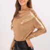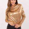 Elegant blouse with a refined character, perfect for formal occasions and parties. Made of shiny material made of a blend of polyester and viscose, which attracts attention and adds a shine to the styling. The blouse has a varied texture of the material, giving it a unique look. It has long sleeves and a flowing neckline, which beautifully complements the silhouette, adding lightness and elegance to the overall look. Decorative pleats on the material introduce an additional element of chic, emphasizing its original design. The standard length makes the blouse perfectly complement various stylizations.