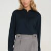 Modern women’s oversized blouse is a combination of freedom and elegance. Made of light and pleasant to the touch viscose, it provides comfort throughout the day. The model has a polo neckline with a stand-up collar and long sleeves with cuffs, giving the whole a classic character. The blouse is buttoned halfway with a covered placket, emphasizing its minimalist and elegant style. Thanks to the loose fit, it will work perfectly in everyday, office, and smart casual outfits.