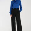 Elegant women’s blouse in a regular cut made of delicate, pleasant to the touch viscose. The model has long sleeves finished with a wide cuff with decorative buttons, which adds subtle elegance to the whole. The blouse is put on over the head and stands out with a wide scarf for tying around the neck, it can be tied into a bow, left loose or wrapped around the neck, creating different stylizations. It is a versatile wardrobe piece, perfect for both work and special occasions.