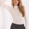 Elegant, thin longsleeve blouse with a fitted cut, perfect for everyday stylizations, especially when comfort and subtle elegance count. Made of high-quality blend of viscose, elastane, cashmere, and nylon, it is exceptionally soft, pleasant to the touch and elastic, which makes it fit perfectly on the silhouette. The model in a smooth pattern has a standard length and long sleeves, which makes it great as a base for a blazer, cardigan, or elegant vest. The thin turtleneck adds class to the whole, while not burdening the styling. The blouse has no fastening, which makes it comfortable to put on and perfectly fits the body. It is a timeless wardrobe staple that combines comfort, simplicity, and elegance.