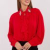 Unique elegant blouse created with special occasions, work, and party outings in mind. Its smooth pattern gives a touch of class and subtle elegance, making it perfect for both formal and more evening stylings. The model is made from lightweight, pleasant to the touch polyester, which beautifully drapes on the silhouette. The long length, with a characteristic back longer than the front, gives the blouse a modern and extremely feminine character. The blouse delights with details, a wide collar with decorations and a subtle ruffle emphasize its elegant style. Puffy sleeves add lightness and a fashionable, expressive form, creating a striking yet still very harmonious whole. The lack of fastening makes the blouse comfortable and easy to put on. This is the perfect model for women who appreciate elegance, comfort, and unique details in their everyday and special stylings.