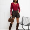 The fitted blouse with a casual character, made of soft cotton with elastane, which perfectly fits the silhouette and provides full comfort of wearing. The model has a standard length and long sleeves, making it a practical choice for everyday wear. The delicate V-neck subtly emphasizes the neckline, adding a feminine touch to the blouse. The smooth, ribbed material gives the whole a modern and minimalist look, and the embroidered flower placed at chest height is a charming, subtle detail that distinguishes the model from classic basics. The blouse has no fastening, which further emphasizes its comfort and simplicity. Ideal for everyday styling, both on its own and as a base for favorite blazers or cardigans.