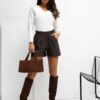 Fitted casual blouse, made of soft cotton with elastane, which perfectly fits the silhouette and provides full comfort when worn. The model has a standard length and long sleeves, making it a practical choice for everyday wear. The delicate V-neck subtly accentuates the neckline, adding a feminine touch to the blouse. The smooth, ribbed material gives the whole a modern and minimalist look, and the embroidered flower placed at chest height is a charming, subtle detail that distinguishes the model from classic basics. The blouse has no closure, which further emphasizes its comfort and simplicity. Ideal for everyday styling, both on its own and as a base for favorite blazers or cardigans.
