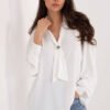 Stylish elegant blouse is the perfect choice for everyday wear, for work and for special occasions when you want to look chic and classy. Its smooth pattern emphasizes a minimalist yet very feminine character, making it perfect for many styles, both formal and more casual. The model is made of light, pleasant to the touch polyester, which beautifully complements the silhouette. The elongated cut and long sleeves make the blouse look elegant and provide comfort for all-day wear. A special decoration is the V-neck with a tie, allowing for subtle adjustment of style, from more classic to romantic. The detachable brooch adds a chic, jewelry accent. Puffy sleeves introduce a fashionable, slightly bold line, and the lack of fastening ensures ease and simplicity of putting on. This is a blouse that will easily accentuate your elegant style, regardless of the occasion.
