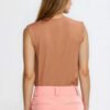 Light and elegant blouse with a regular cut, made of pleasant viscose material. The V-neck subtly emphasizes the neck, adding a feminine character to the whole. The sleeveless design provides freedom and comfort of wearing, and the finish of the neckline and shoulders with a delicate pleat gives the blouse a stylish expression. A model put on over the head, perfect for both everyday and more elegant stylizations.