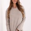 This blouse is a combination of comfort, lightness, and everyday style, created for women who value comfort without sacrificing a fashionable look. Made of high-quality micromodal with added elastane, it is extremely soft, breathable, and pleasant to the touch, while also fitting the silhouette perfectly. The classic, standard length and long sleeves make this model suitable for any time of the year. The dominant striped pattern gives the blouse a timeless, casual character, perfect for everyday wear to work, school, or casual outings. The neckline with a small slit adds a delicate accent, subtly emphasizing the neckline. The lack of fastening makes the blouse extremely comfortable and easy to put on. Universal, stylish, and comfortable, a great choice for everyday outfits.