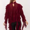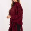 An elegant women’s blouse is the perfect choice for everyday wear, formal occasions, and parties when you want to emphasize your style in a subtle but striking way. Its smooth pattern gives the whole a touch of class and makes it easy to pair with both elegant trousers and a skirt. The model is made of a pleasant to the touch blend of viscose and polyester, making the blouse soft, slightly elastic, and beautifully draping on the silhouette. The standard length and long sleeves make the blouse look elegant and versatile. The turtleneck accentuates the neck and adds a touch of stylish mystery, while the button closure at the neck makes it easy to put on and adds a delicate decorative accent. The blouse also dazzles with unique details, decorative ruffles on the back, front, and sleeves, which give it lightness, a romantic character, and fashionable elegance. It is an excellent choice for women who like to combine subtle classic with striking, feminine finishes.