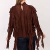 An elegant women’s blouse is a perfect choice for everyday wear, special occasions, and parties when you want to emphasize your style with a subtle yet striking form. Its smooth pattern gives the whole a touch of class and makes it easy to pair it with both elegant trousers and a skirt. The model is made of a pleasant to the touch blend of viscose and polyester, making the blouse soft, slightly elastic, and beautifully draping on the silhouette. The standard length and long sleeves make the blouse look elegant and versatile. The turtleneck emphasizes the neck and adds a touch of chic mystery, while the button closure at the neck makes it easy to put on and serves as a delicate decorative accent. The blouse also enchants with unique details, decorative ruffles on the back, front, and sleeves, which give it lightness, a romantic character, and fashionable elegance. It is an excellent choice for women who like to combine subtle classic with striking, feminine finishes.