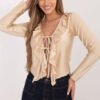Elegant women’s blouse is the perfect choice for formal occasions, festive outings and parties where style and sophistication matter. Maintained in an elegant style, it delights with its subtle form and feminine details. The model made of a combination of polyester and viscose provides lightness, comfort and a beautiful drape of the fabric on the silhouette. The smooth, dominant pattern gives the blouse a minimalist character, making it perfect with both classic skirts and elegant trousers. The blouse has a short length, giving the outfit a modern expression, and the long sleeves fit perfectly into the model’s formal character. The biggest decoration is the neckline with an eye-catching tie, which replaces the traditional button fastening, creating a delicately romantic accent. An additional ruffle on the front adds lightness and subtle elegance to the overall look, emphasizing the feminine style of the blouse. This is a unique proposition for women who appreciate elegance combined with modern, decorative details. Perfect for receptions, family celebrations or stylish evening outings.