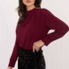 Elegant blouse with a subtle, feminine style, perfect for formal occasions and work. Made of smooth fabric that is a blend of polyester and elastane, ensuring comfort and gently fitting the silhouette. The blouse has a round neckline, and its decoration is eye-catching, long sleeves that add elegance. Puffy sleeves with decorative pleats on the shoulders and delicate buttons give the whole a unique character. The standard length makes the blouse look great with both skirts and trousers, creating elegant stylizations.