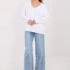 Casual everyday blouse, combining comfort with subtle, feminine detail. Made of soft cotton with a touch of elastane, it provides comfort and a slightly fitted cut. The standard length model has long sleeves and a V-neckline that subtly showcases the neck. The dominant decoration is an application in the form of an embroidered flower, giving the blouse a delicate, stylish accent. An ideal proposal for everyday, casual stylizations that combine comfort with feminine charm.