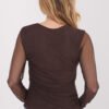 Elegant blouse made of delicate mesh with a fitted silhouette, which subtly emphasizes the figure and gives the styling a refined character. Made of a combination of polyester and elastane, it provides wearing comfort and material elasticity. The model with a smooth pattern has a classic, round neckline and long sleeves, which remain unlined, creating a light and sensual effect. The blouse has a lining on the body, which guarantees comfort and aesthetic finish. Decorative pleats add elegance to the whole and subtly shape the figure. The standard length makes the blouse perfect for both work, formal styling, and elegant outings or parties.