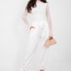 An elegant, fitted women’s blouse is a unique proposition for women who appreciate style and versatility. It will work perfectly for formal occasions, work, parties, as well as in daily, more elegant stylizations. The smooth pattern emphasizes its timeless character and allows for easy pairing with other wardrobe pieces. The blouse is made of high-quality polyester with elastane, which ensures elasticity, comfort and a good fit to the silhouette. The short length subtly emphasizes the proportions, and the flowing, round neckline adds delicacy and feminine elegance to the overall look. The model has long sleeves made of mesh without lining, which add lightness and a spectacular look. In the central part, the blouse is equipped with lining, providing comfort and proper coverage. An additional asset is the draping, which beautifully shapes the silhouette and emphasizes the elegant character of the blouse. The lack of fastening makes the model comfortable and easy to put on. It is a stylish and feminine blouse, perfect for high-waisted pants, skirts, and elegant blazers.