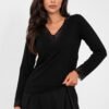 The fitted everyday blouse is the perfect choice for women who appreciate comfort combined with subtle elegance. The model in a casual style will work great for both everyday wear and work, creating aesthetic and feminine stylizations. The smooth pattern and ribbed structure of the material give the blouse a modern yet versatile character. The blouse is made of a flexible and pleasant to wear polyester and elastane blend, which provides comfort and a good fit to the silhouette. The standard length makes the model perfectly match with pants and skirts of various cuts. Stylish accents are the long sleeves finished with delicate lace and the V-neckline trimmed with lace, adding feminine charm and lightness to the whole look. The lack of fastening emphasizes the simplicity of the cut and comfort of wearing. This is a blouse that combines everyday comfort with elegant details, perfect for many stylizations.