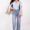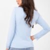 A fitted everyday blouse is the perfect choice for women who appreciate comfort combined with subtle elegance. The model in a casual style will work great both for everyday wear and for work, creating aesthetic and feminine stylizations. The smooth pattern and ribbed structure of the material give the blouse a modern yet versatile character. The blouse is made of a flexible and pleasant to wear blend of polyester and elastane, which ensures comfort and a good fit to the silhouette. The standard length makes the model perfectly match with trousers and skirts of various cuts. Stylish accents are the long sleeves finished with delicate lace and the V-neckline trimmed with lace, adding feminine charm and lightness to the whole look. The lack of fastening emphasizes the simplicity of the cut and the comfort of wearing. This is a blouse that combines everyday comfort with elegant details, perfect for many stylizations.