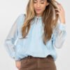 An elegant women’s blouse is a perfect choice for everyday wear, work, or formal occasions. Made of high-quality material combining Tencel and polyester, it ensures comfort, breathability, and a stylish look throughout the day. The standard-length model with long sleeves and a classic collar looks exceptionally stylish and timeless. The blouse has no fastening, giving it a minimalist character and making it easy to put on. The smooth pattern emphasizes the elegance of the cut, while decorative buttons add a subtle, decorative touch. An additional advantage is the lining in the central part, which increases comfort and aesthetics. Perfect for pairing with elegant pants, a skirt, or a blazer.