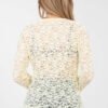 Stylish lace blouse with an elegant character, perfect for formal occasions, work, parties, and for everyday styling in a more sophisticated look. The varied texture of the material gives the whole a unique and subtly decorative appearance. The blouse is made of high-quality viscose with the addition of elastane, which ensures comfort and a delicate fit to the silhouette. The model is of standard length, with long sleeves and a classic, round neckline. The lack of fastening makes the blouse comfortable and easy to put on. There is a lining on the front, which increases comfort and the aesthetics of the finish, and the decorative ruffle adds elegance and a feminine character to the whole. It is the perfect choice for material trousers, a skirt, or under a blazer, both for formal meetings and special occasions.