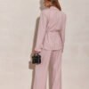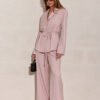 The elegant blouse inspired by a jacket stands out with a delicate waist tie, subtle button fastening, and vertical stripes that visually slim the silhouette. The carefully crafted cut emphasizes the feminine form while maintaining comfort. The model was made in Poland with attention to detail and high-quality finish. The blouse has shoulder pads that give the silhouette a distinctive, modern character. It will work perfectly in both everyday and business stylings combined with elegant trousers, a skirt, or as a stylish alternative to a classic jacket.