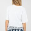 Everyday women’s blouse with a feminine and stylish character. Made of high-quality cotton with elastane, it provides comfort, flexibility, and a good fit to the silhouette. The model with a short length and short sleeves will be perfect for warmer days. The round neckline emphasizes the classic cut and gives the blouse a universal look. Decorative inscriptions on the front, complemented by zircons, attract attention and add a fashionable accent to the whole. An additional advantage is the lace at the bottom of the blouse and subtle zircons, which give it a feminine glow. Perfect for everyday stylizations with jeans, shorts, or a skirt.