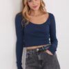 The fitted longsleeve blouse is the perfect choice for everyday casual styling. The short cut beautifully accentuates the silhouette, while providing comfort and freedom of movement. This versatile model will work perfectly for everyday wear with both jeans and trousers or skirts. The blouse is made of high-quality cotton, making it soft, breathable, and comfortable to wear. The smooth pattern gives it a minimalist character, while the ribbed material adds subtle structure and a fashionable finish. The model has long sleeves and a classic, round neckline. The lack of fastening emphasizes the simple, timeless form. It is an excellent wardrobe staple – practical, comfortable, and easy to style throughout the year.