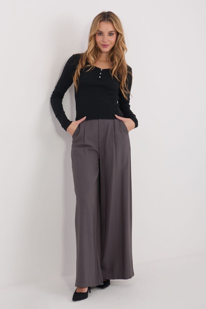 The fitted longsleeve blouse is a perfect base for everyday casual styling. The short cut subtly emphasizes the silhouette and pairs well with jeans, fabric pants, or a high-waisted skirt. The model is suitable for both everyday wear and work, combining comfort with a versatile design. The blouse is made of high-quality cotton, which ensures comfort, breathability, and softness to the touch. The smooth pattern gives it a timeless character and makes it easy to create various stylings. The model has long sleeves and a classic, round neckline fastened with three buttons. This subtle detail adds a feminine charm to the whole and allows for a delicate adjustment of the neckline depth. This practical, stylish, and versatile proposal is a great addition to any wardrobe.