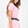 The fitted blouse with a casual character is a perfect base for everyday styling. Made of high-quality cotton and elastane blend, it provides comfort, flexibility, and perfect fit to the silhouette. The material is soft, skin-friendly, and drapes well on the body. The model has a standard length, short sleeves, and a classic round neckline, making it incredibly versatile and timeless. The smooth pattern emphasizes the minimalist style, while the ribbed structure of the material adds a subtle texture and fashionable finish. The blouse has no fastening, making it comfortable and easy to put on. It will work perfectly for everyday wear, both combined with jeans, shorts, and a skirt, creating comfortable and stylish outfits.