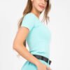 A fitted blouse with a casual character is a perfect base for everyday styling. Made of high-quality cotton and elastane blend, it provides comfort, flexibility, and perfect fit to the silhouette. The material is soft, skin-friendly, and drapes well on the body. The model has a standard length, short sleeves, and a classic, round neckline, making it extremely versatile and timeless. The smooth pattern emphasizes the minimalist style, while the ribbed structure of the material adds a subtle texture and fashionable finish. The blouse has no fastening, making it comfortable and easy to put on. It will work perfectly for everyday wear, both paired with jeans, shorts, and a skirt, creating comfortable and stylish outfits.