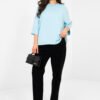 Loose-fitting basic blouse is the perfect everyday choice for women who appreciate comfort and timeless simplicity. Made of a material similar to butter, extremely soft, delicate, and exceptionally pleasant to the touch. The dominant viscose makes the fabric breathable, light, and beautifully drapes on the silhouette. A model of standard length with short sleeves ensures freedom of movement and comfort throughout the day. The classic, round neckline emphasizes the universal character of the blouse, while the lack of fastening further increases the convenience of use. The smooth pattern makes it an excellent base for many stylizations, it will work great in combination with jeans, shorts, and a skirt. It is a must-have in the everyday wardrobe, which combines minimalism, functionality, and exceptional comfort.