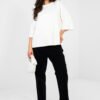 A looser cut basic blouse is the perfect everyday proposition for women who value comfort and timeless simplicity. Made of a material like butter incredibly soft, delicate and exceptionally pleasant to the touch. The dominant viscose makes the fabric breathable, light and beautifully drapes on the silhouette. The model of standard length with short sleeves provides freedom of movement and comfort throughout the day. The classic, round neckline emphasizes the universal character of the blouse, and the lack of fastening further increases the comfort of use. The smooth pattern makes it an excellent base for many stylizations, perfect for pairing with jeans, shorts, or a skirt. A must-have in everyday wardrobe, combining minimalism, functionality, and exceptional comfort.