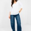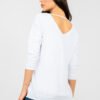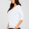 Everyday blouse with a timeless, smooth pattern is the perfect base for many stylizations. Made of high-quality cotton with the addition of elastane, it provides comfort, breathability, and gentle fit to the silhouette. The material is soft and elastic, making it great for all-day wear. A model of standard length with 3/4 sleeves is a practical and versatile solution for any season. The classic V-neck subtly emphasizes the neckline and adds a feminine character. A unique accent is the V-neck on the back, which gives the blouse lightness and originality, while maintaining its everyday style. The lack of fastening makes the blouse comfortable and easy to put on. It is an excellent choice for both jeans, fabric pants, and a skirt perfect for everyday wear, work, or casual meetings.