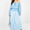 An elegant boho style blouse is a combination of subtle femininity and casual lightness. The smooth pattern emphasizes its universal character, making it perfect for everyday wear, work, and more formal occasions. Made of a blend of lyocell and polyester, it delights with its softness, lightness, and gently flowing material structure. The fabric beautifully drapes on the silhouette, providing comfort all day long. The blouse has a lining in the central part, which increases comfort and improves the finishing aesthetics. The model with a Spanish neckline elegantly exposes the shoulders, giving the styling a romantic character. The long sleeve finished with a flounce adds lightness and emphasizes the boho atmosphere. An additional advantage is the tying at the front, which is a subtle, decorative accent, and the flounce at the bottom gives the whole outfit a sense of airiness and feminine charm. This is a unique proposition for women who appreciate elegance with a hint of nonchalance and want to look stylish in any situation.