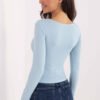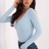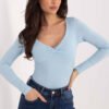 The fitted longsleeve blouse is a combination of feminine cut and everyday comfort. Maintained in a casual style, it will work perfectly both for everyday wear and for work, serving as a universal base for many outfits. Made of high-quality cotton with a touch of elastane, it is soft, flexible, and comfortable to wear. The material gently adapts to the silhouette, highlighting its assets and providing freedom of movement. The smooth pattern gives it a timeless character and makes it easy to combine with other wardrobe items. The short length goes well with high-waisted pants and skirts. The long sleeves make the model suitable for any season. The V-neck subtly accentuates the neck and slims the upper part of the silhouette, and the decorative knot at the neckline adds originality and feminine charm. The lack of fastening increases the comfort of use. This is a stylish and functional proposal for women who appreciate simplicity with a striking detail.