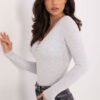 The fitted longsleeve blouse is a combination of feminine cut and everyday comfort. Maintained in a casual style, it will work perfectly both for everyday wear and for work, serving as a versatile base for many stylizations. Made of high-quality cotton with a touch of elastane, it is soft, flexible, and comfortable to wear. The material gently adjusts to the silhouette, emphasizing its advantages and providing freedom of movement. The smooth pattern gives it a timeless character and makes it easy to combine with other wardrobe pieces. The short length pairs perfectly with high-waisted pants and skirts. The long sleeve makes the model suitable for any season. The V-neck subtly highlights the neck and slims the upper part of the silhouette, while the decorative knot at the neckline adds originality and feminine charm. The lack of fastening increases user comfort. This is a stylish and functional proposition for women who appreciate simplicity with a spectacular detail.