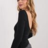 The fitted longsleeve blouse is the perfect choice for women who appreciate the combination of minimalism and subtle sensuality. Maintained in a casual style, it will work perfectly in both everyday outfits and work ensembles. Made of high-quality cotton, it is soft, breathable, and pleasant for the skin. The smooth pattern emphasizes its universal character, making it easy to match with jeans, elegant trousers, or a skirt. The short length complements high-waisted styles, gently highlighting the silhouette. The long-sleeved model ensures comfort all year round. The boat neckline subtly exposes the collarbones and shoulders, giving the outfit lightness. At the back, there is a deeper neckline that adds a feminine and modern character to the overall elegant form. The lack of fastening makes the blouse comfortable and practical to wear. It is a timeless wardrobe staple with a striking accent on the back.