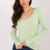 The fitted women’s longsleeve shirt is a universal base for many styles, both for everyday wear and for work. Maintained in a casual style, it perfectly combines comfort with timeless simplicity. The model of standard length is made of stretchy, ribbed cotton, which pleasantly envelops the body and perfectly fits the silhouette, emphasizing its advantages. The smooth pattern makes the shirt extremely versatile and easy to combine with other wardrobe items. Long sleeves provide comfort on cooler days, and the V-neck subtly slims the neck and adds a feminine character. The lack of fastening emphasizes the minimalist, modern design. It is a practical and stylish proposition that will work great in combination with jeans, a skirt, or elegant trousers, creating a comfortable and fashionable look for any occasion.
