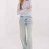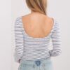 The fitted women’s longsleeve blouse is a stylish proposal in a casual edition, perfect for everyday wear. The short cut beautifully emphasizes the silhouette, and the elastic material fits the body, providing comfort and freedom of movement. The model made of a combination of cotton and elastane is pleasant to the touch, breathable, and slightly stretchy. The striped pattern gives the whole a timeless character and makes the blouse fit perfectly into everyday stylizations. The boat neckline subtly exposes the shoulder line, while the deeper neckline on the back adds a sensual accent and distinguishes the model from classic cuts. The long sleeve and lack of fastening emphasize the minimalist, modern design. It is an excellent choice for jeans, shorts, or high-waisted skirts, an ideal base for fashionable, casual stylizations.