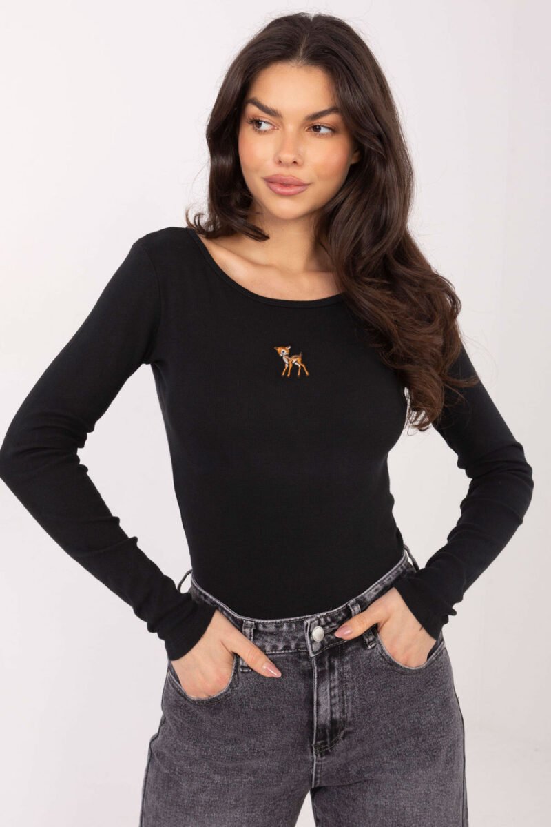 The fitted women’s longsleeve blouse in a casual style is a perfect choice for everyday stylizations. The classic cut and minimalist finish make the model universal and timeless. The blouse has a standard length, which fits nicely on the silhouette and goes well with jeans, fabric pants, and skirts. The long sleeve and round neckline emphasize its casual, everyday character. The lack of fastening ensures comfort and ease of putting on. There is a small embroidery on the front, which is a subtle, decorative accent adding a delicate originality to the whole, without disturbing the minimalist style. The model made of high-quality cotton is soft, breathable, and comfortable to wear all day long. It is an ideal base for everyday, casual stylizations.