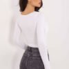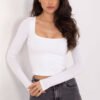 The fitted women’s longsleeve blouse in a casual style is an ideal proposition for everyday styling. The smooth pattern gives it a universal character, making it easy to pair with jeans, trousers, or a skirt. The shorter length model beautifully accentuates the silhouette and pairs perfectly with high-waisted styles. The long sleeve makes the blouse suitable for all year round, and the trendy square neckline subtly highlights the neck and collarbones, adding a feminine touch. The lack of fastening ensures comfort and ease of putting on. The material, a combination of cotton and elastane, guarantees softness, breathability, and flexibility, making the blouse perfectly tailored to the silhouette and ensuring comfort throughout the day. It is a basic wardrobe element that combines simplicity with modern detail.