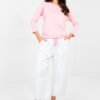 The daily casual women’s blouse is a combination of comfort and feminine, subtle design. The smooth pattern makes the model universal and easy to style, perfect for both jeans and skirts or pants. The blouse has a standard length and 3/4 sleeves, which give it lightness and make it perfect for most of the year. The boat neckline elegantly emphasizes the neck and collarbones, adding a delicate, feminine touch to the whole. At the bottom, there is a practical tie that allows for individual adjustment and subtle emphasis on the waist. The lack of fastening ensures comfort and ease of putting on. The model is made of high-quality cotton and elastane blend, making the material soft, flexible and pleasant for the skin. This is an ideal proposal for daily comfortable, stylish and timeless stylizations.