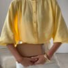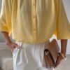 Airy, elegant blouse with a loose cut, subtly falling sleeves and delicate button fastening combines comfort with modern, feminine aesthetics. Sewn in Poland with attention to detail, it delights with careful finishing and timeless design that will easily fit into many stylings. It will work perfectly in office sets, combined with fabric trousers or a skirt, as well as in more casual stylings with jeans and minimalist accessories.