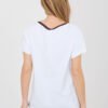 Stylish and comfortable everyday blouse in a casual edition, perfect for everyday wear. The model has a classic, round neckline finished with a contrasting trim, which gives a subtle character and highlights the details of the outfit. The blouse is decorated with an embroidered sequin logo on the front, creating an eye-catching accent and the dominant pattern of the entire model. Short sleeves and standard length provide comfort when wearing, and the loose, everyday cut fits into a casual style. Made of high-quality cotton material with elastane, it is soft, pleasant to the touch, and slightly elastic, ensuring comfort throughout the day. The model does not have a fastening, emphasizing the simplicity and functionality of the design.