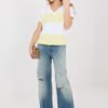 Stylish women’s blouse in a casual version, perfect for everyday wear. The model of standard length has short sleeves and a feminine V-neckline that subtly emphasizes the neck line and adds lightness to the entire outfit. The dominant element of the design are wide stripes, which give the blouse a fashionable and timeless character. The simple, comfortable cut allows the model to fit well on the silhouette and ensures freedom of movement during daily use. The blouse is made of high-quality cotton with elastane, making the material soft, pleasant to the skin, and slightly elastic. The model without fastening emphasizes its comfortable, daily character and makes it perfect for many casual outfits.