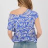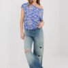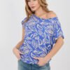 Stylish everyday blouse is the perfect choice for women who value comfort and a fashionable look in their everyday stylizations. Thanks to its universal cut, it will work great with jeans, shorts, and skirts. The model is made of pleasant to the touch viscose, which is light, breathable, and comfortable to wear even on warmer days. The blouse has a round neckline and short sleeves, giving it a casual, casual character. The material features a print, which is the main decorative element and adds a fashionable look to the whole. The blouse has a standard length, so it fits well on the silhouette and is easy to match with various wardrobe items. The model is put on over the head without fastening, which increases the comfort of use. It is a practical and stylish proposition for everyday wear, ideal for many daily stylizations.