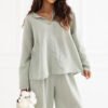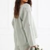 A daily blouse made of high-quality cotton, which provides comfort and breathability throughout the day. The smooth pattern of the model makes the blouse versatile and easy to match with many different styles, both with jeans and skirts. The blouse has a V-neckline adorned with a subtle button, adding a delicate, feminine character. The standard length ensures a good fit on the silhouette and allows it to be worn in many ways. The model is equipped with long sleeves that can be rolled up, making it easy to adjust the blouse to the weather and styling. The lack of fastening makes it comfortable and quick to put on, perfect for everyday occasions.